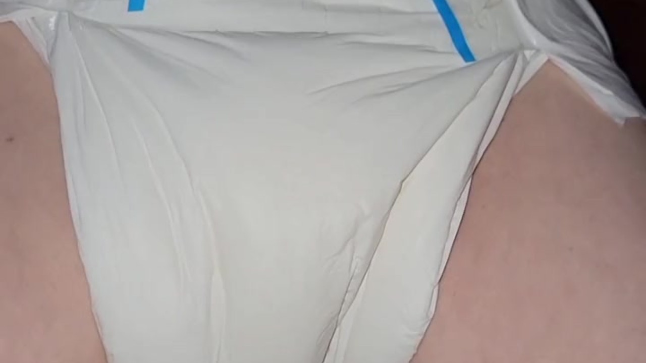 Diaper girl pees thick diaper